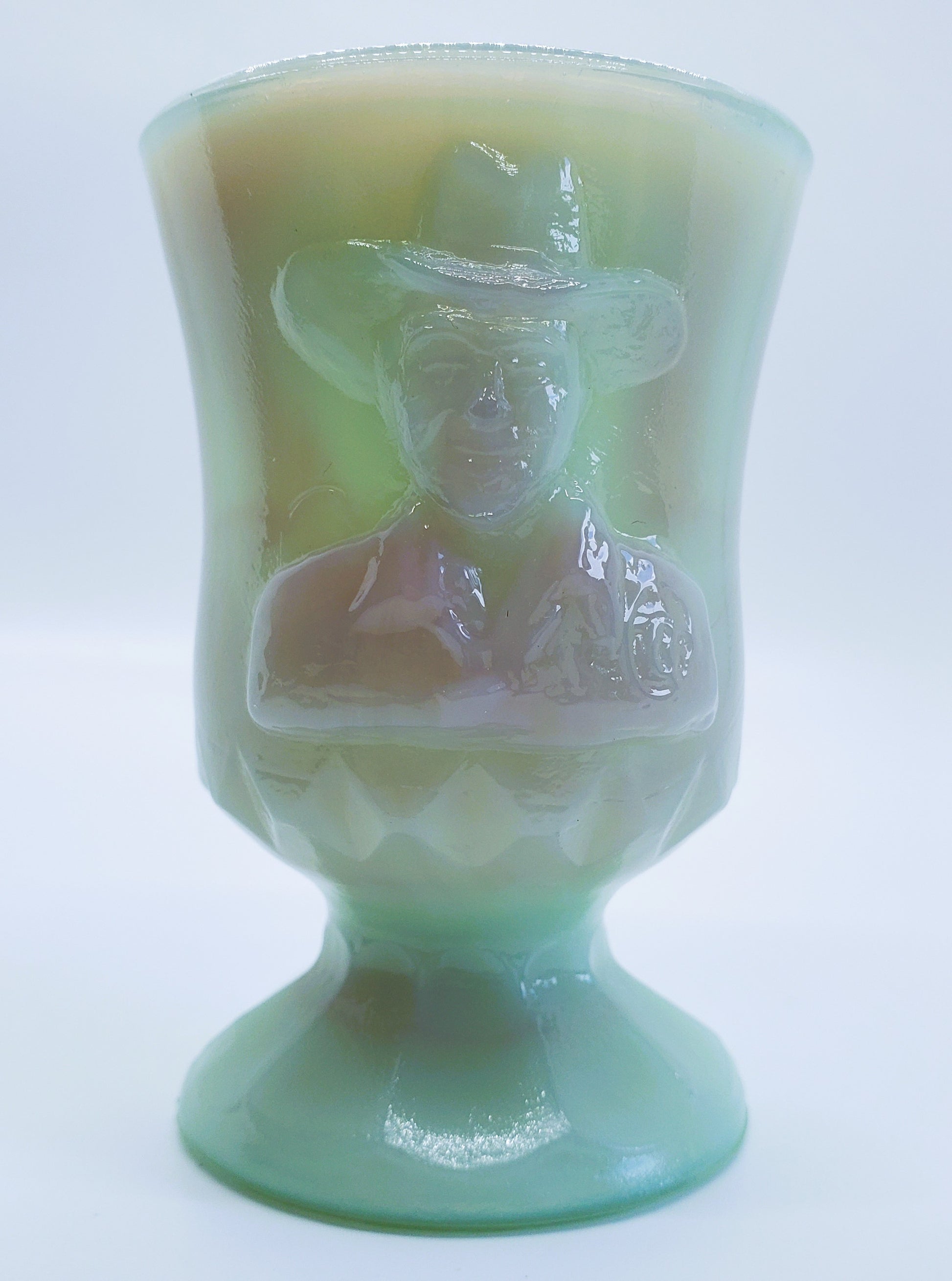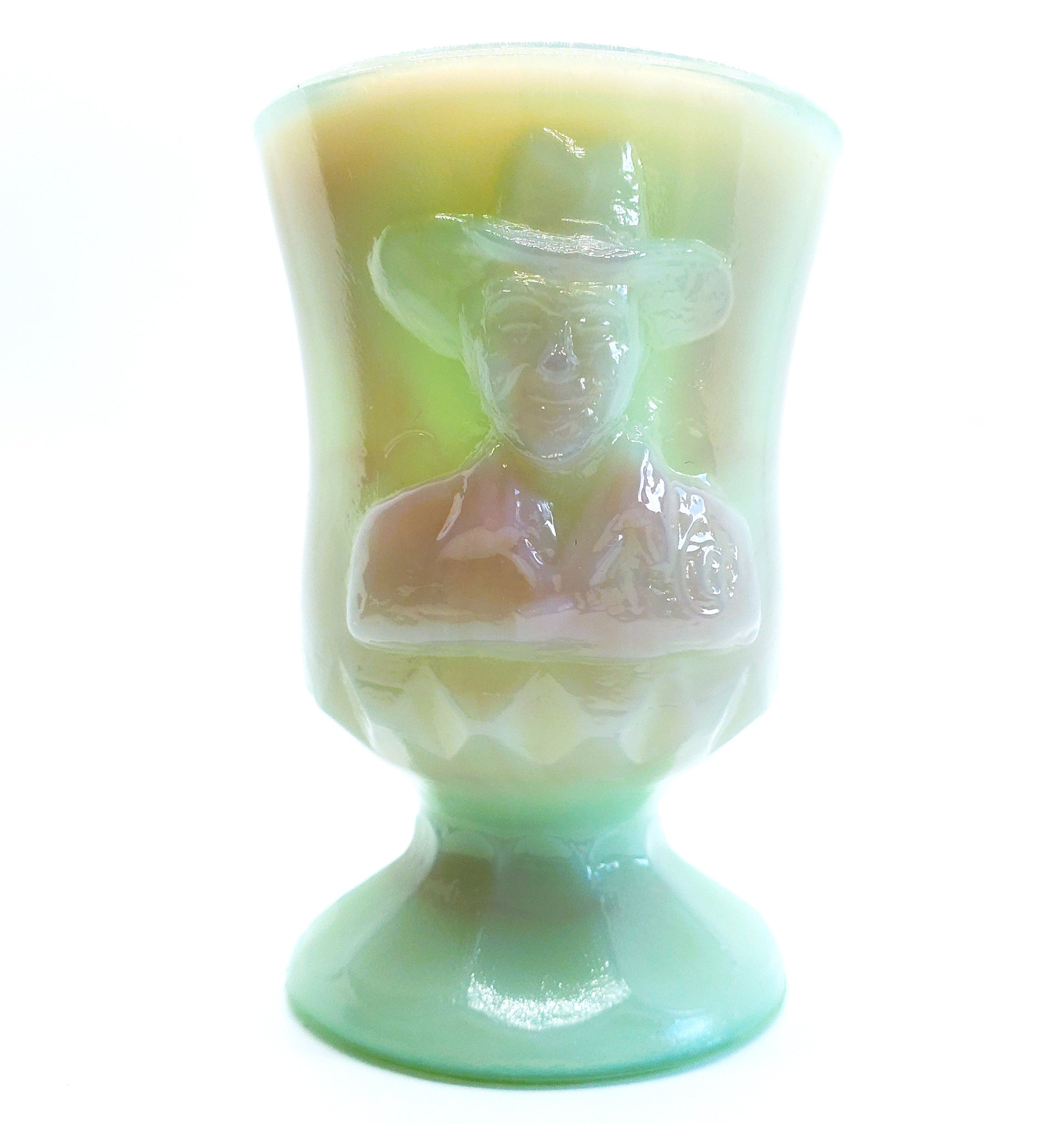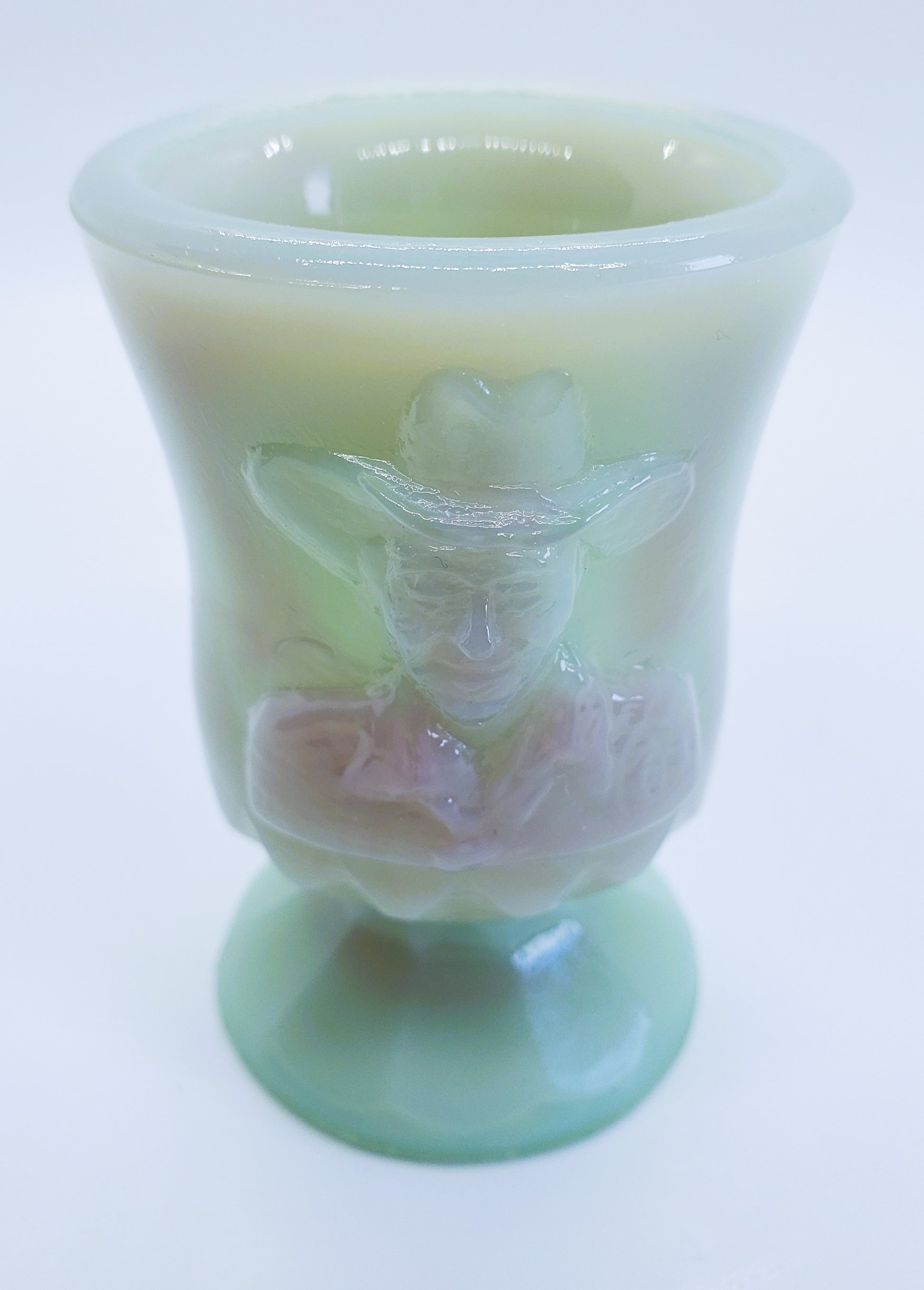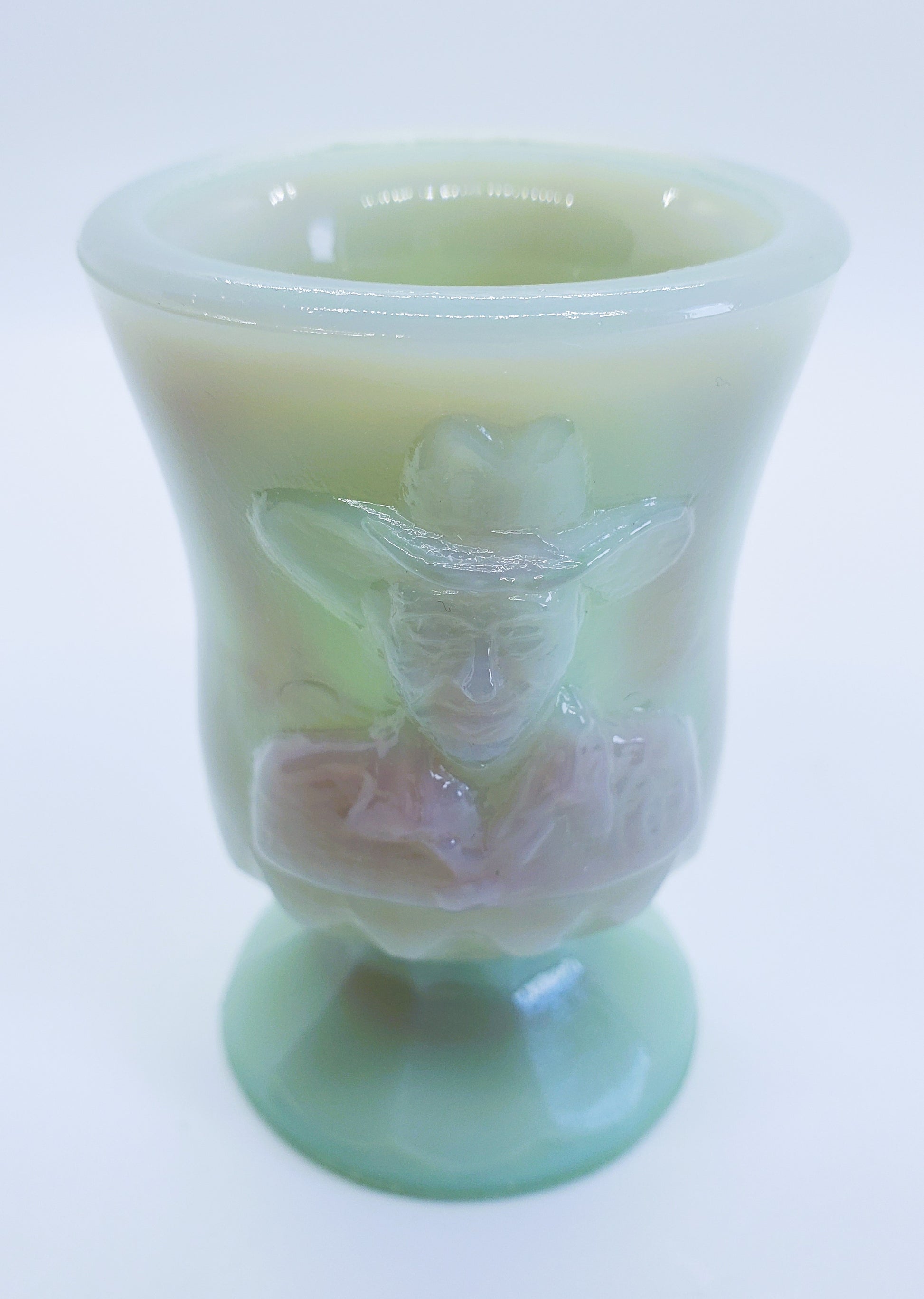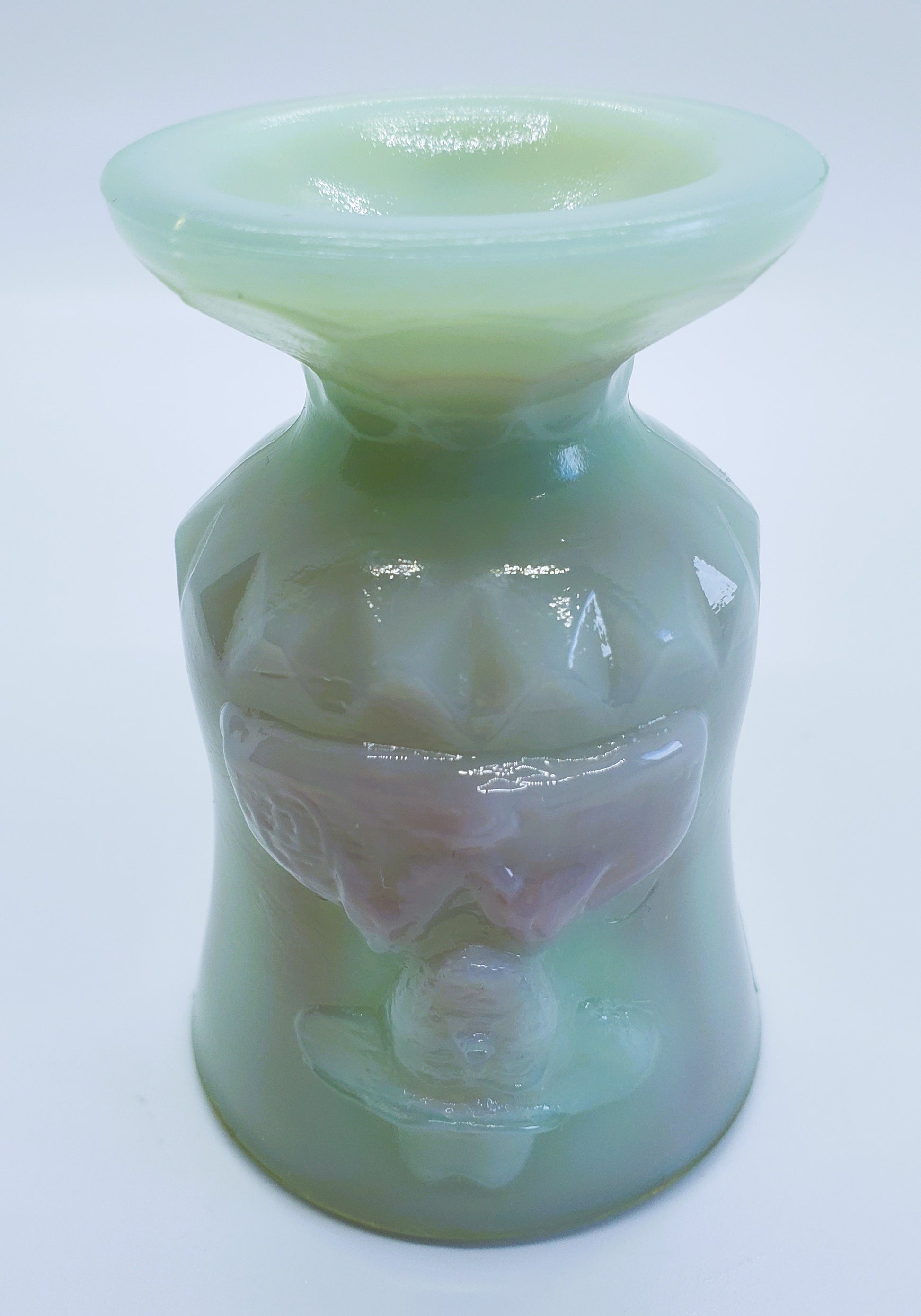 Boyd Glass Hopalong Cassidy Toothpick Holder Limited Edition With Maker's Mark Seafoam Green With Pink Hues