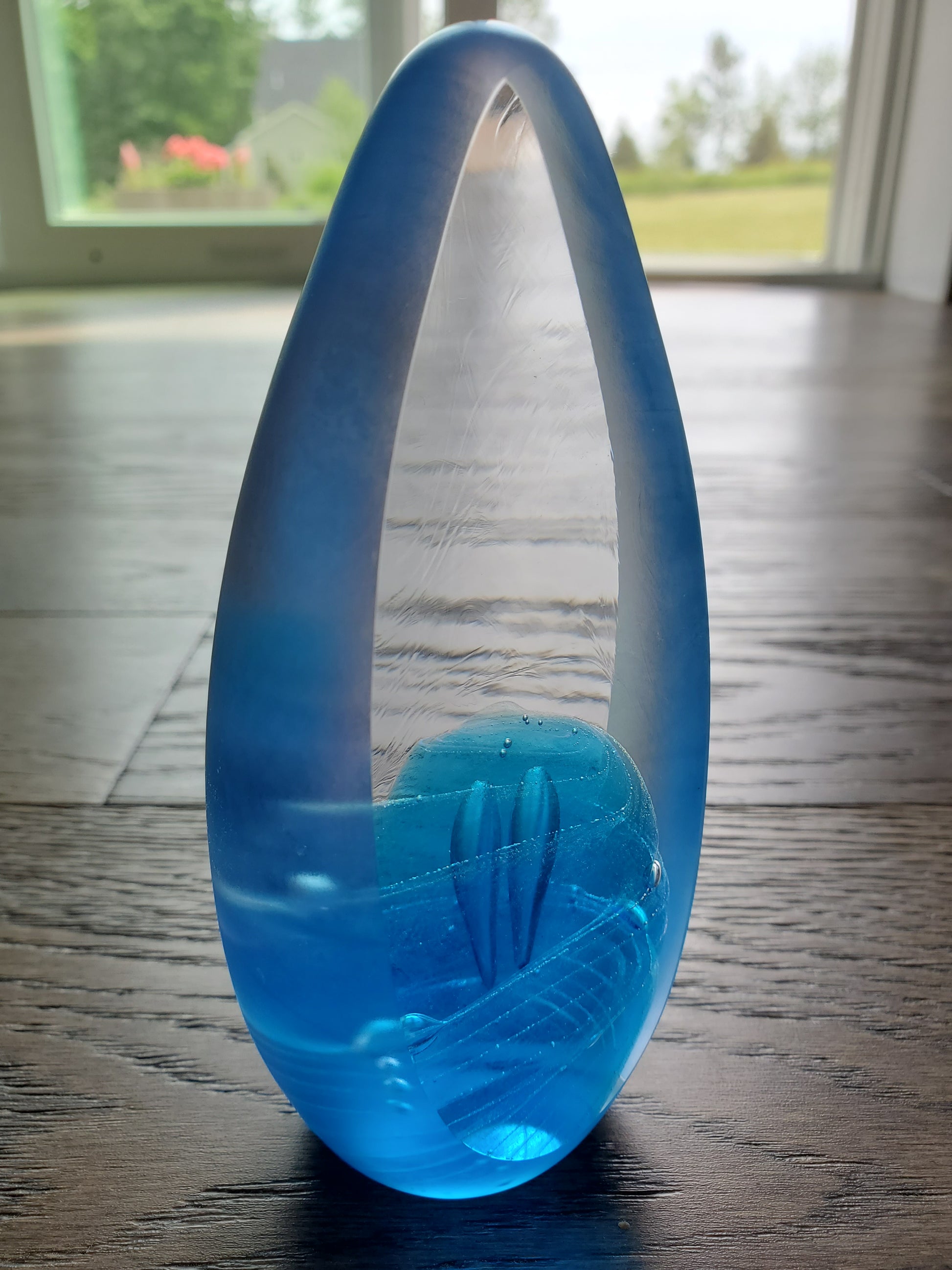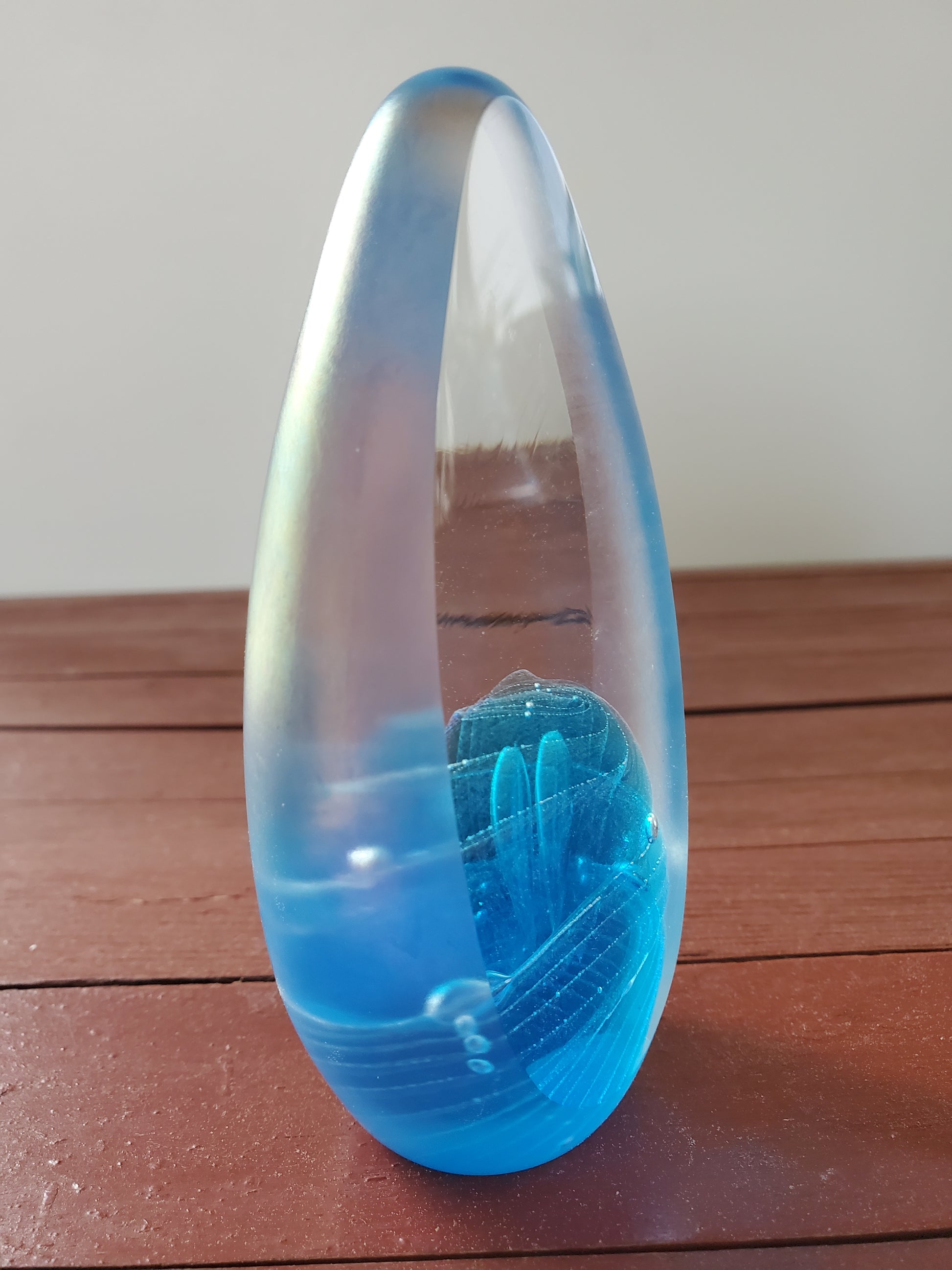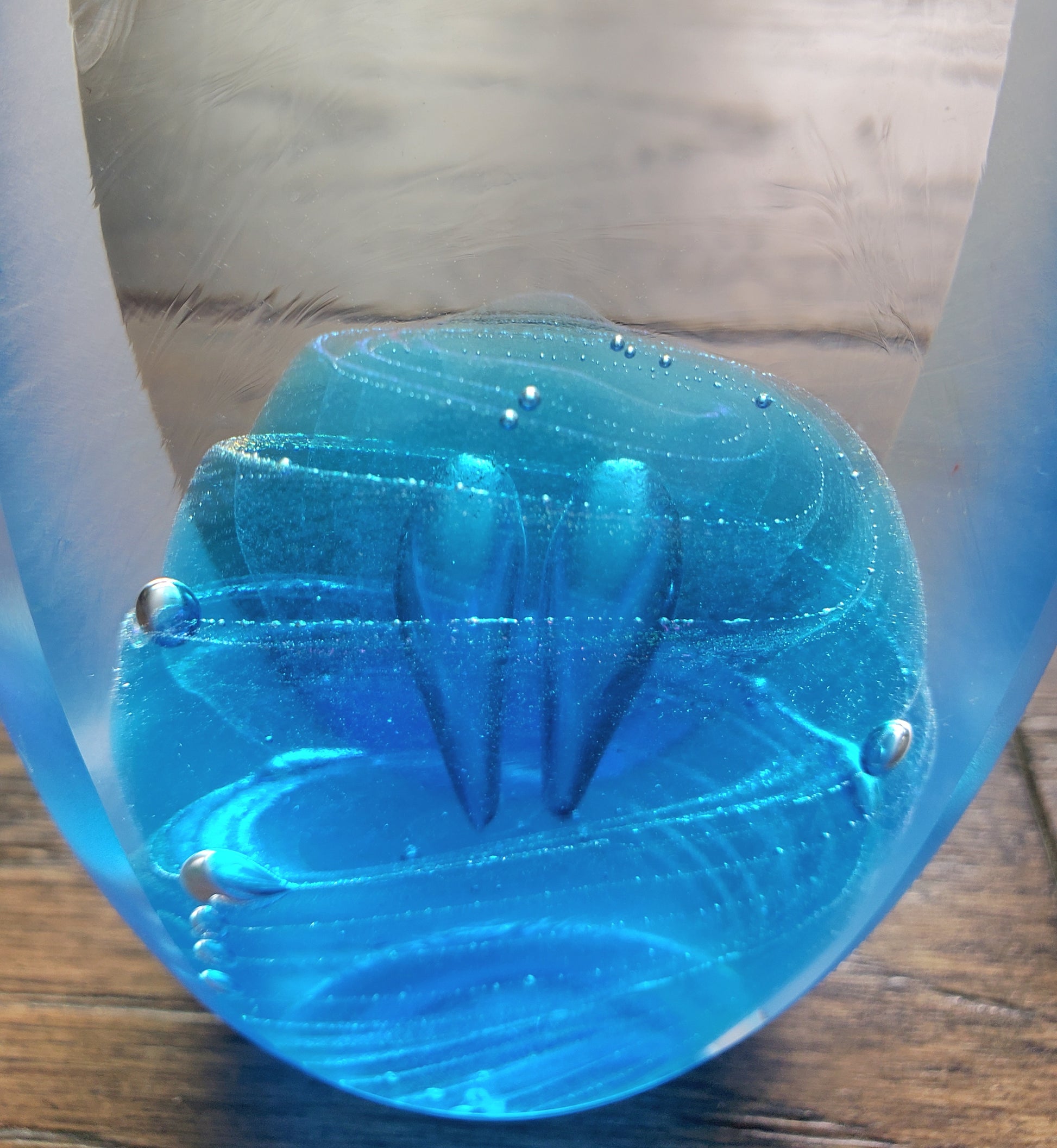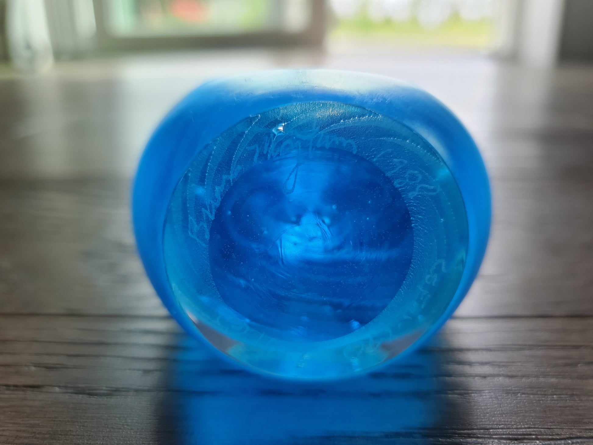 Vintage 1988 Brian Maytum Studio Art Glass Paperweight With An Iridescent Finish And Controlled Bubbles Signed Dated