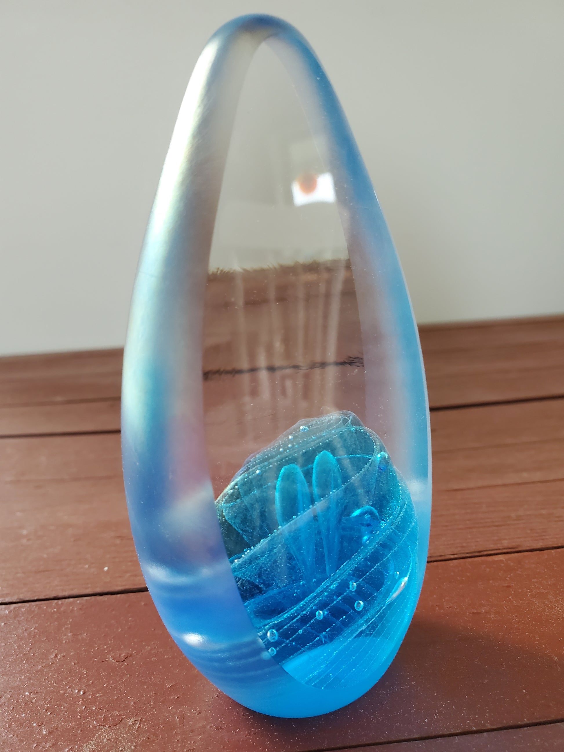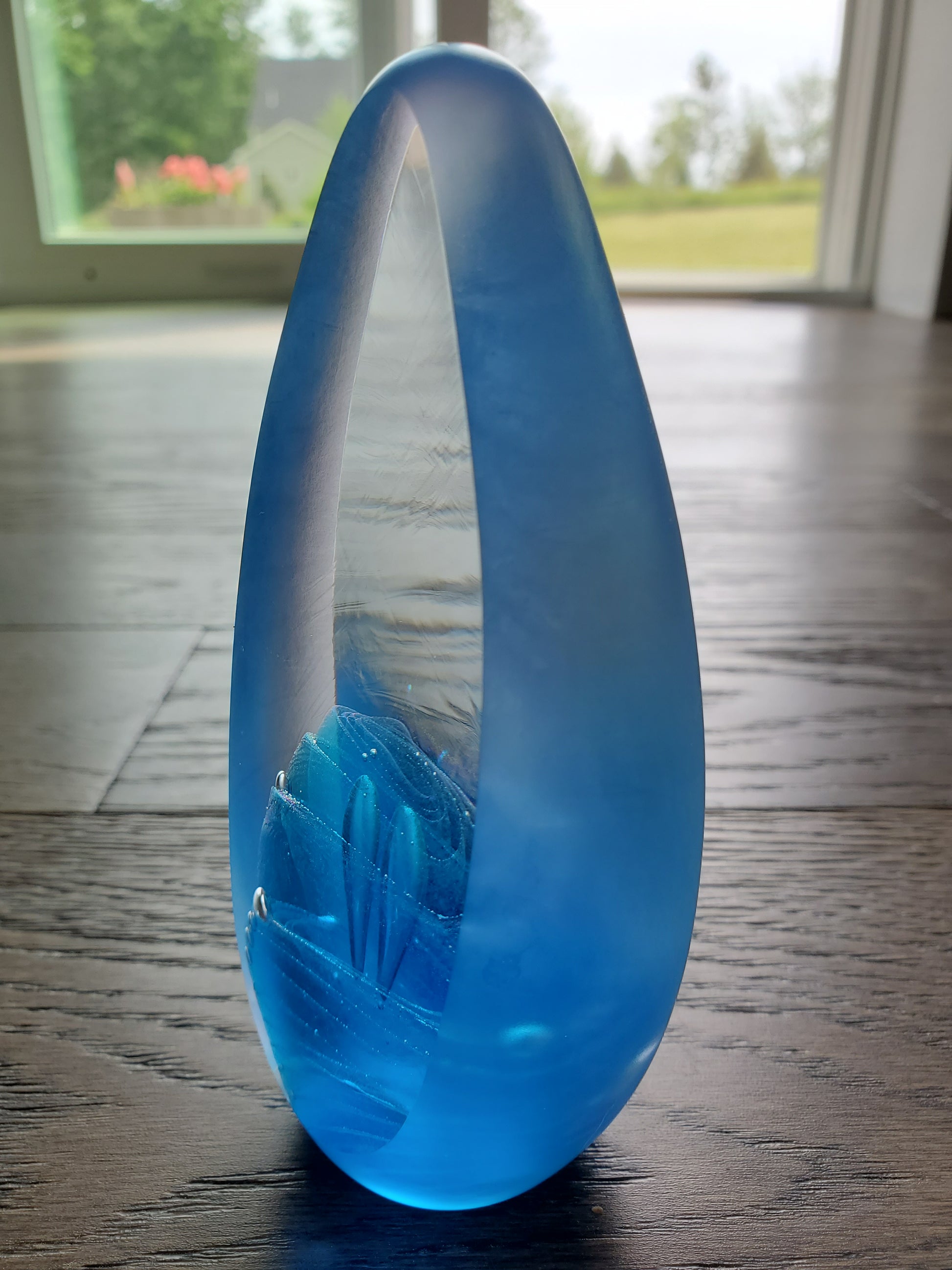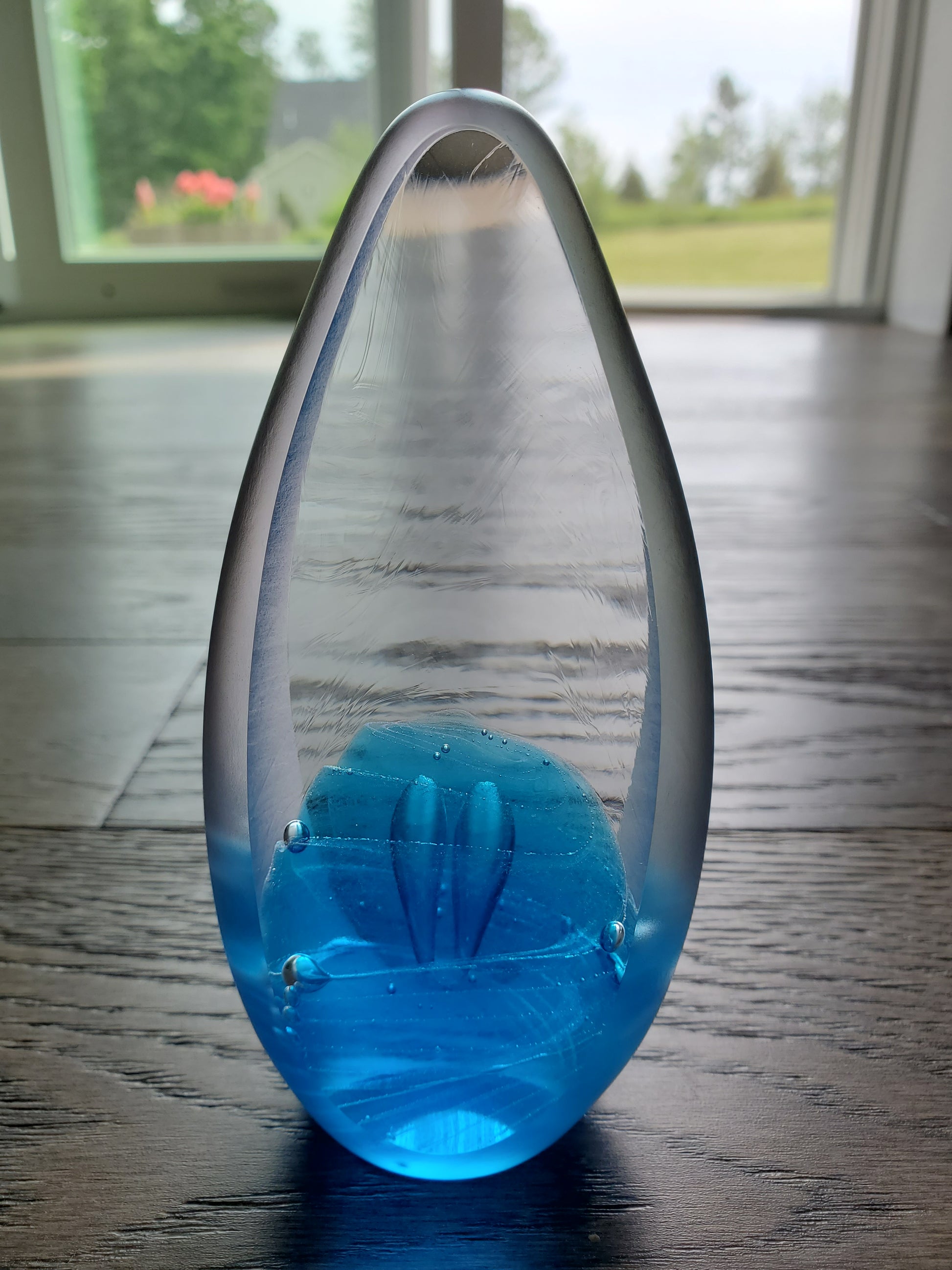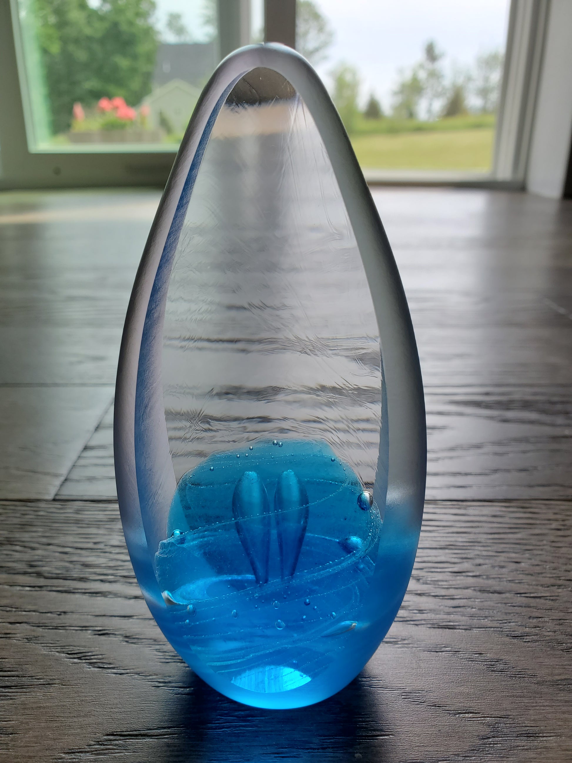 Vintage 1988 Brian Maytum Studio Art Glass Paperweight With An Iridescent Finish And Controlled Bubbles Signed Dated