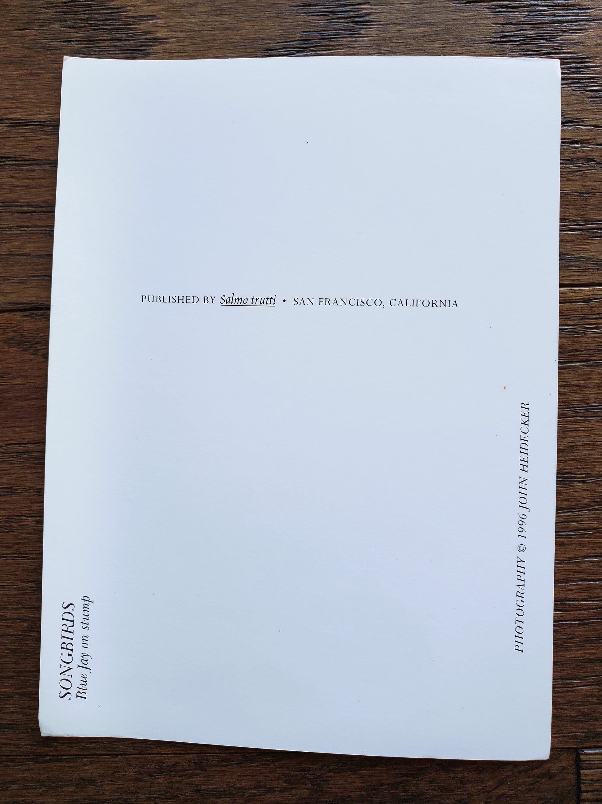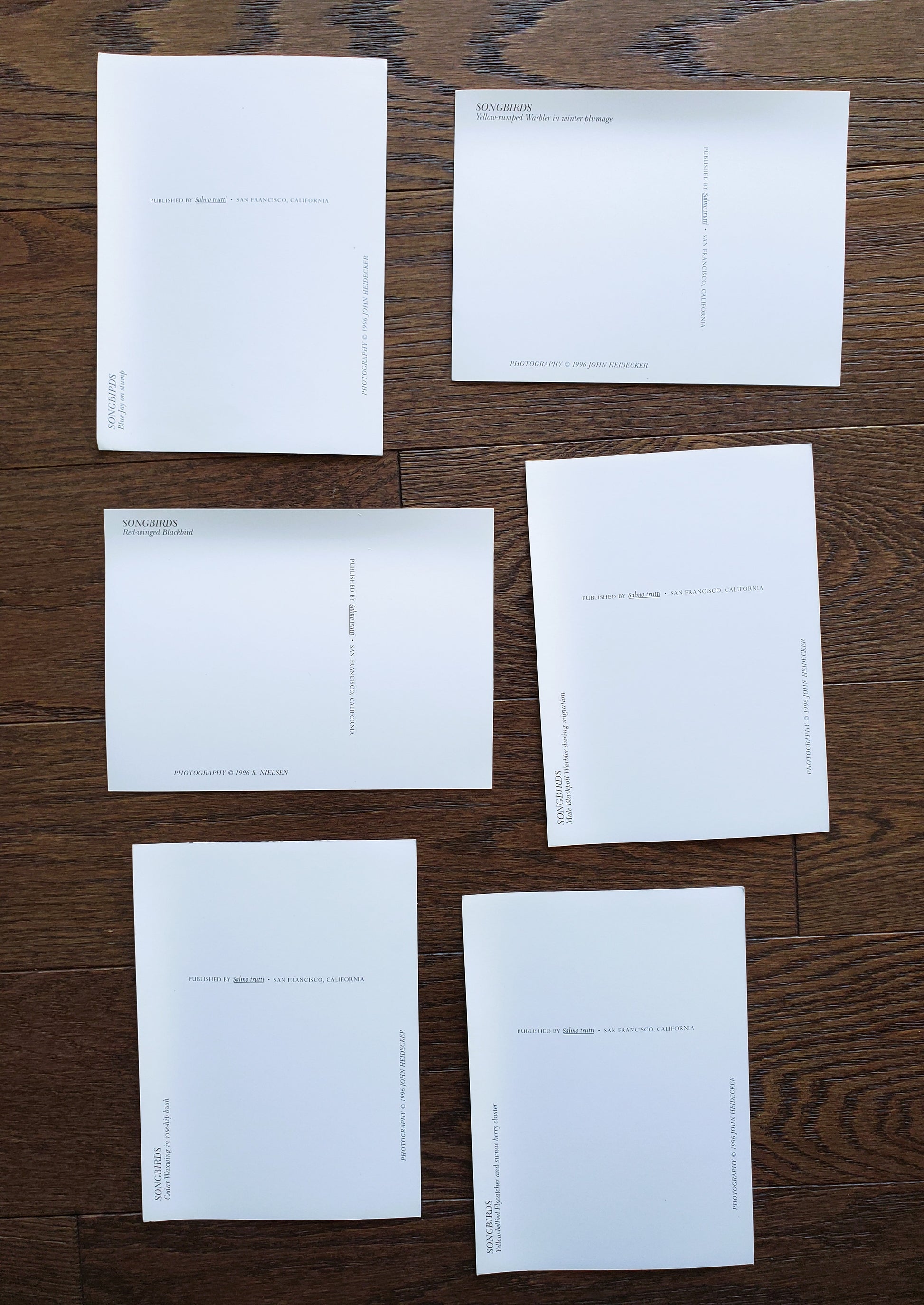 For your consideration is this set of 6, vintage, postcards, of photographed birds by John Heidecker. These were published by Salmo Trutti in San Francisco California with a copyright of 1996.